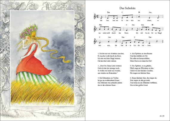 Illustrationen, Noten, Texte, Akkorde und die Möglichkeit, die Melodien im