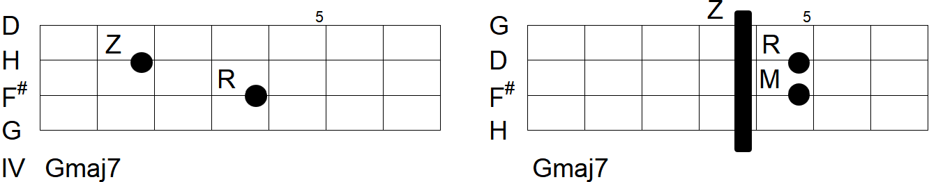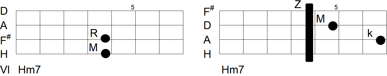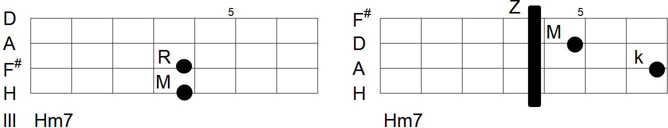 Für den H-Moll-Akkord beispielsweise, der wie im Foto gezeigt gegriffen