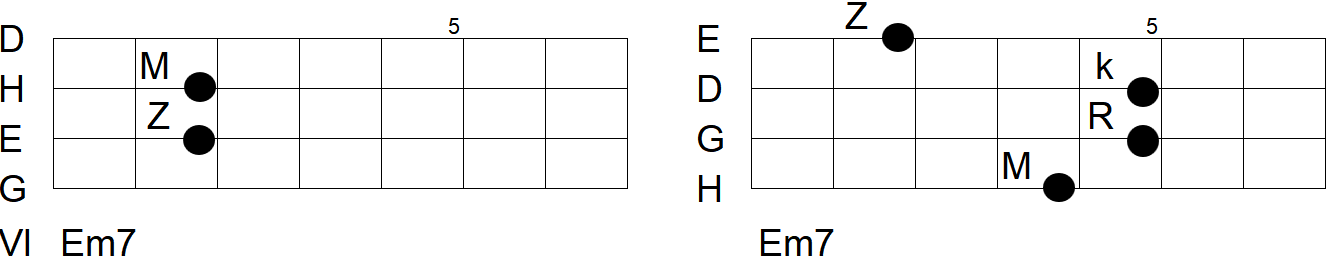 Em7 anstatt G oder Hm7 anstatt Hm oder anstatt D.
