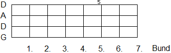 dargestellt, das die ersten sieben Bünde des Griffbretts zeigt. Zur